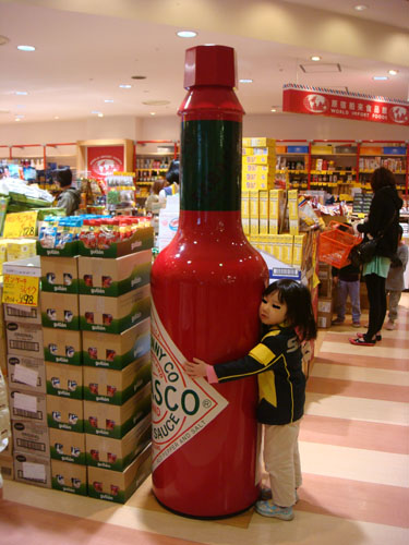 大きなタバスコの瓶(?)が店頭にあって、