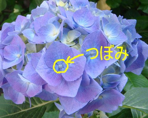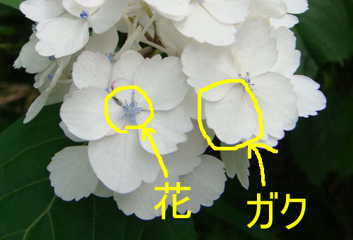 あじさいの花の部分は、ガクの真ん中の、小さいところ。