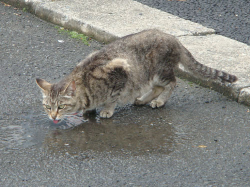 水を飲むネコ
