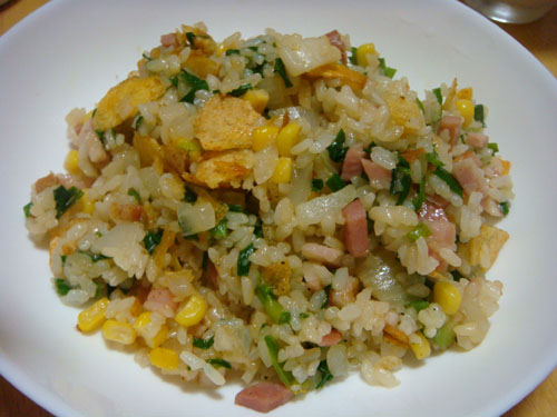 かといって、外食したり、惣菜を買ったりはしたくないので、ホットプレートでチャーハンを作りました。