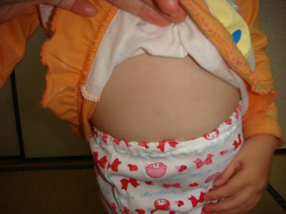 パンツの上から紙おむつを履かせて万が一しくじっても漏れにくいようにしようとしましたが、