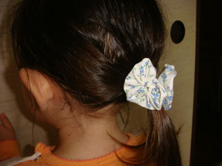 ヨーコはこれを今朝付けて、学校へ行きました。