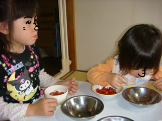赤いのを口に入れて、プッて種を出すの。できるかな??」