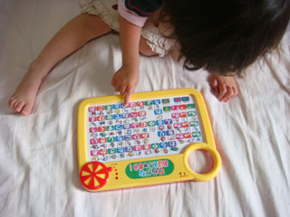 最近のチーコは、ひらがなのボタンを押すと音が出る、