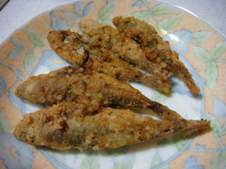 今日の昼にスーパーに買物に行き、そこで豆アジの唐揚げの試食がありました。