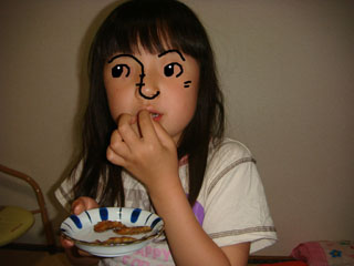 (メインはチャーハンで、ホットプレートで作っている間、コンソメスープを飲んで待っていてもらった。)