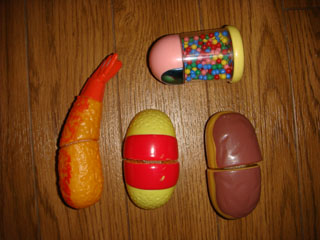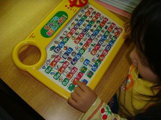 例えば、玩具が「すいか」と言ったら、「す」「い」「か」とボタンを押す、というものです。