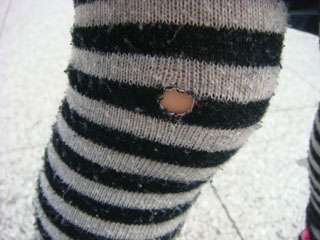 ←どこかで転んだ時に、タイツに穴が開いてしまいました。