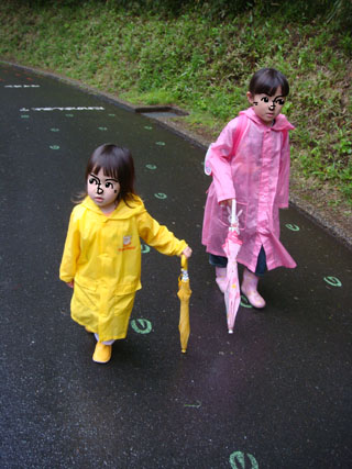 それでも「そのうち止むだろう。」と思い、雨合羽+傘で家を出ました。