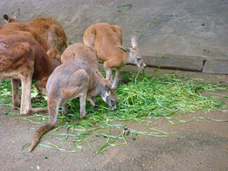 アカカンガルーは餌タイム。