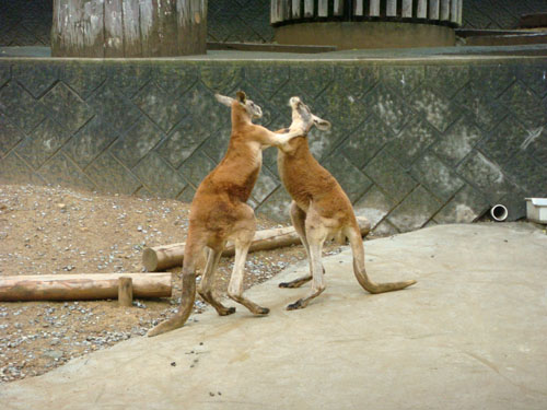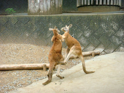 アカカンガルーのオスが、喧嘩しています。