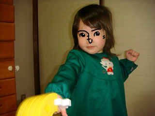 ちなみに、↑の緑の服は、ヨーコも着ましたが、私も着ていた服です。^^(母の手作り。)