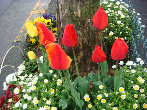 雨上がりの空気の中、花の色がとても鮮やかだったので、