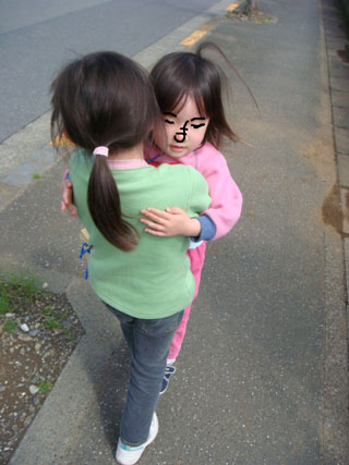 今日は玄関を出た直後に、同じ幼稚園に通っていたお友達の姿を発見!