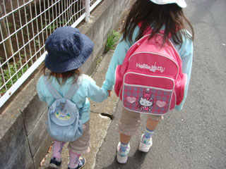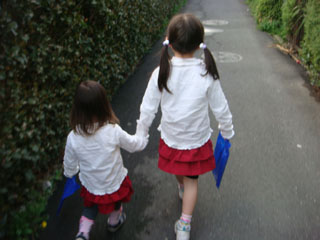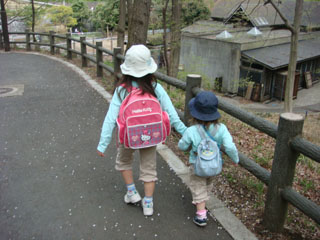 ヨーコはお友達と一緒に学校へ行きました。^^