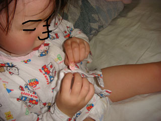 ちび子の隣で寝ていた旦那はそれに気付かず、ちび子から一番遠い私が気付いて起床。