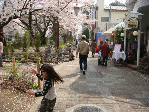 国立の桜は満開を過ぎ、散り始めています。