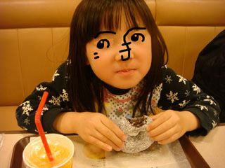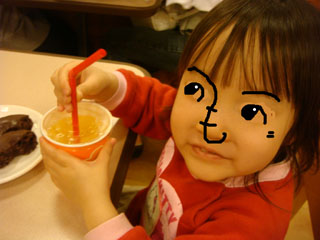 頑張って歩いてくれたヨーコへのご褒美に、ミスドに入って休憩です。^^
