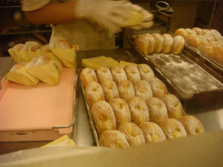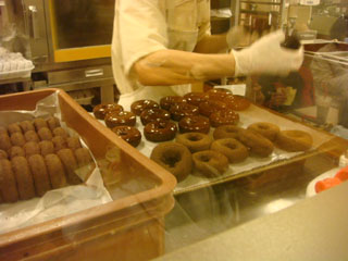 席の後ろがガラス張りになっていて、ドーナツを作るところが見えました。^^