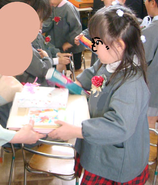 別室で年中組のママ達が預かってくれて、弟妹がいる保護者も、式に集中することができます。