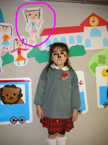 ピンクで囲ったのは、ぴよ子が書いたぴよ子の絵です。^^