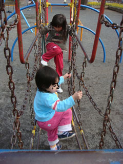ぴよ子が3歳前の時は、ちび子ほどは登れませんでした。