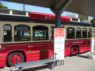 ちょうどバス乗り場に「あかいくつバス」が止まりました。