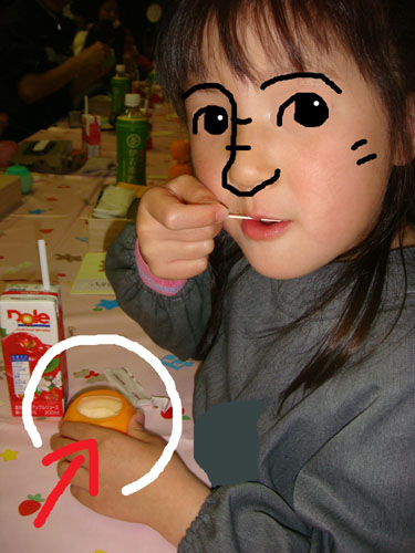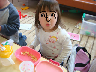 ちび子を迎えに行くと、おやつの時間の真っ最中でした。