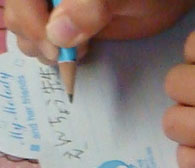 頑張って漢字を書いています。