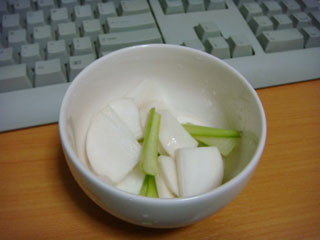 というわけで、冷蔵庫にあったカブをザクザク切って、