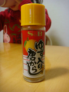私がこの「ゆず入り唐からし」を使っていたら、ヨーコが興味を示しました。