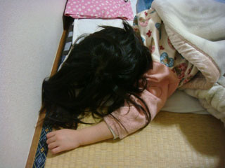 ヨーコが帰宅するまで、3代目リカちゃんの植毛の仕上げ作業をやってました。