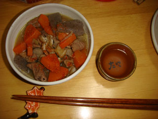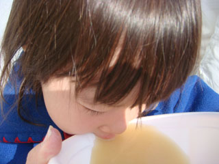 (粉茶があったので、ぬるい湯に粉茶を溶かすだけで、
