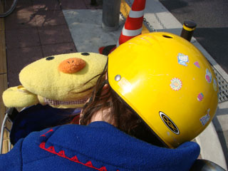 慌てて…ちび子をバギーに乗せて走って帰宅し、お茶を入れて、今度は自転車で幼稚園へ。