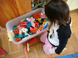 幼稚園で、行事の準備等があるたびに、ちび子は他の弟妹とよくブロック遊びをしています。