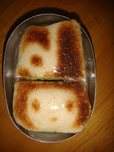 食パンの上に乗せて、焦げ目でマイメロを作っています。