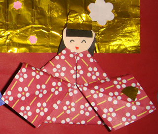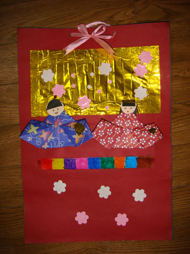 もう間もなくひな祭りということで、ぴよ子が幼稚園で作った雛飾りを持ち帰りました。