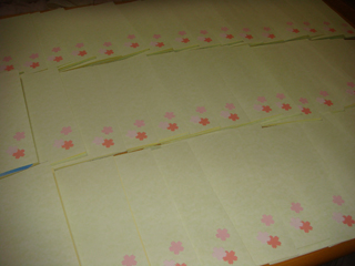 さらに、招待状の裏の部分に何にもないのも寂しいので、私が内職で桜を貼り付けることにしました。