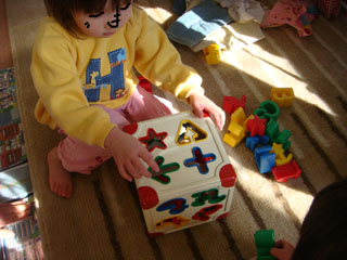 あっという間に2時間が経ち、ちび子を迎えに行くと、ちび子はおもちゃのお片づけの最中でした。
