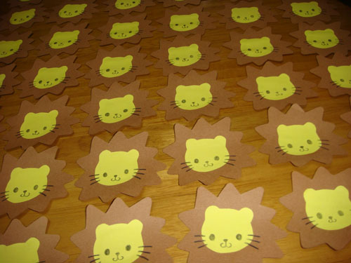 その線に沿ってはさみで紙を切り、その後糊でライオンの顔を貼っていきました。