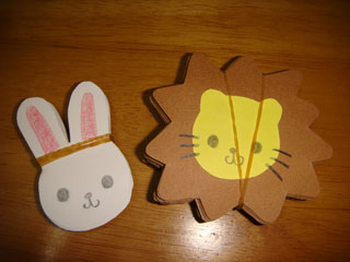 今日は幼稚園で同じ係のママと2人で、招待状の動物作りです。