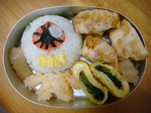毛目玉の目玉の赤い部分はカニカマ、黒は海苔、白いところもカニカマです。