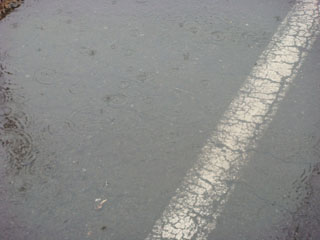2軒目のスーパーに向かう途中で雨がポツポツ。