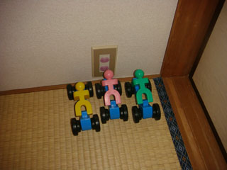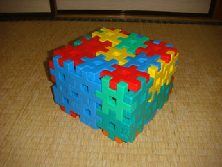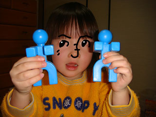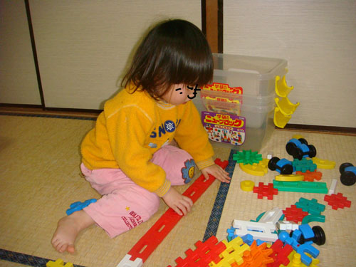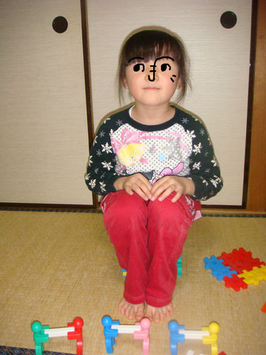 帰宅後、ぴよ子がブロックで椅子を作りました。