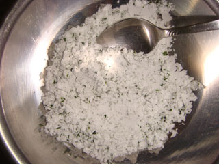 片栗粉と青海苔を混ぜ合わせます。