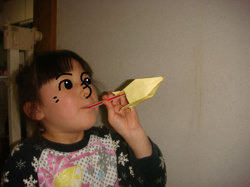 昨日ぴよ子が、折り紙を折った後「家にストローが無いから、幼稚園に持っていこう!」と、