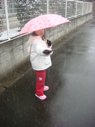 「吹雪ってのは風も強くて、こう、雪が横殴りなの!こんなのまだ優しい方よ!」と、
