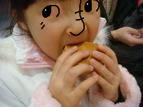 歩き回って寒くなったので、エネルギー補給で大判焼きを食べました。