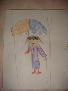 雨の中で傘を差しています。
