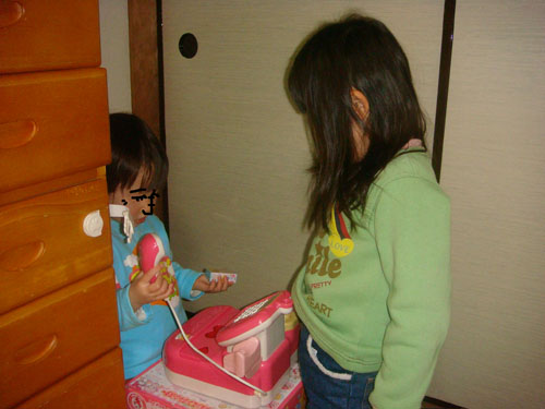 まだごっこ遊びが上手にできないちび子と遊ぶので、